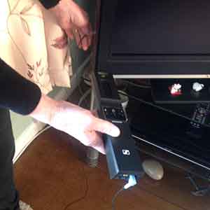 I charged the headphones first which took around half an hour as there was already a small amount of charge inthe transmitter. A full charge can take up to three hours, but with twelve hours of listening time when fully charged, that is quite impressive! The transmitter was placed next to the TV and the connection was inserted into the input socket.